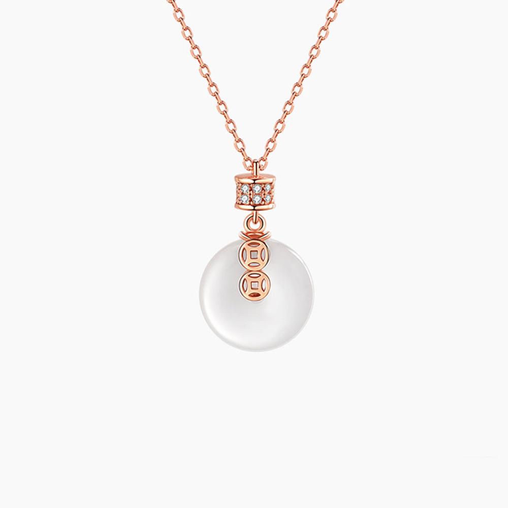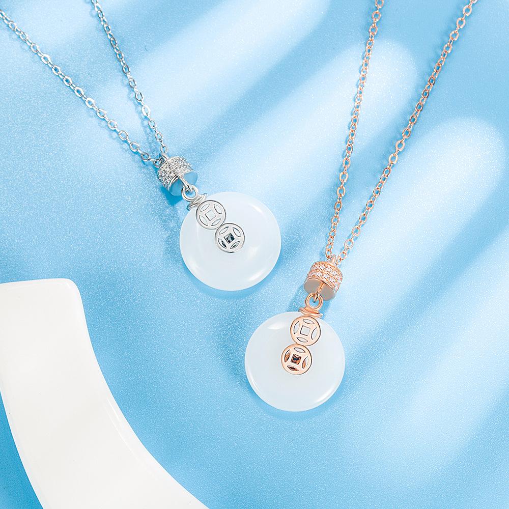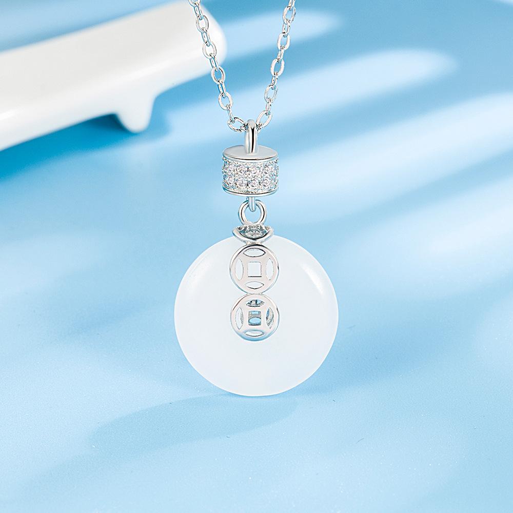 Ретро Пряжка Безопасности Кулон Богатства Ожерелье Женское Легкая Роскошь Имитация Белого Нефрита Кулон Национальный Стиль Круглое Ожерелье Цепочка для Ключицы