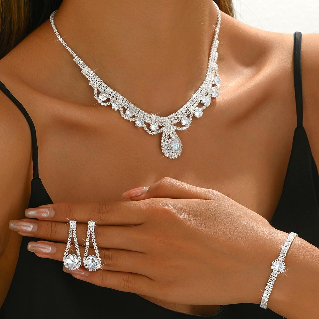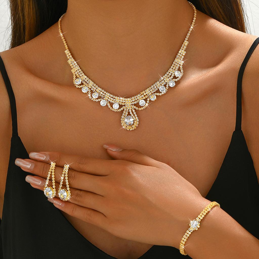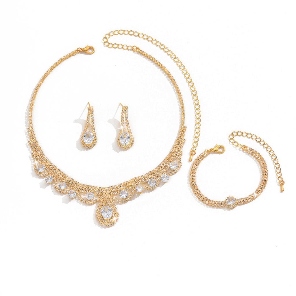 Популярные украшения Золото Серебро Кристалл Голый Бриллиант Ожерелье Серьги Браслет Набор Три Предмета