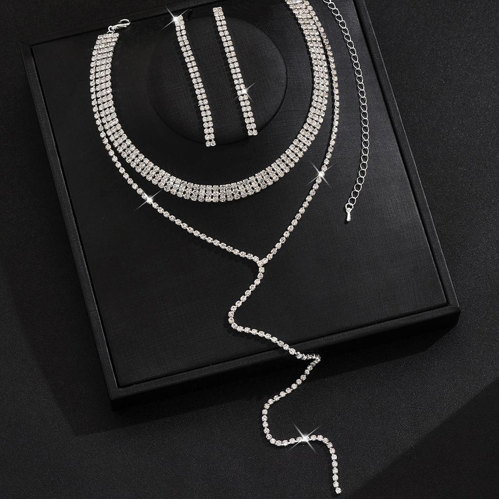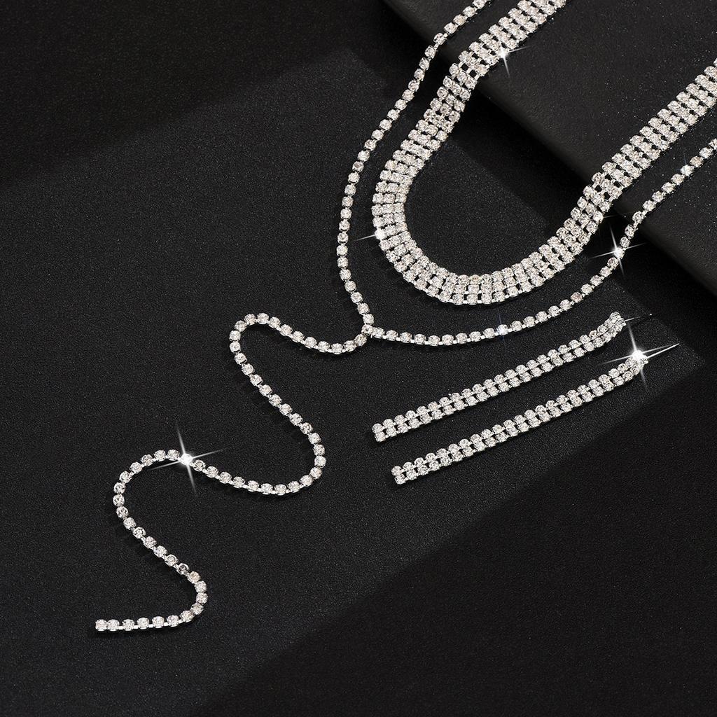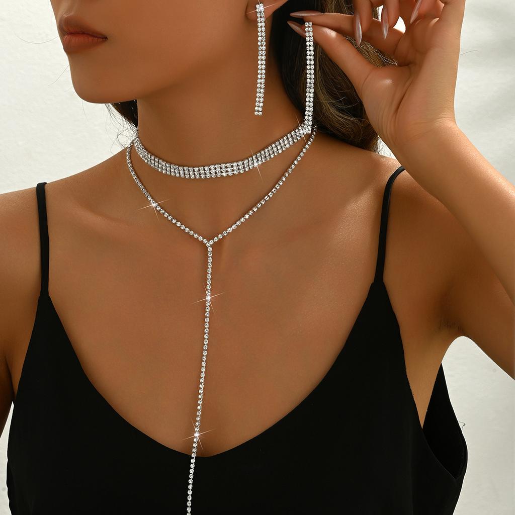 Полная бриллиантовая многослойная цепочка на шею, простое длинное ожерелье с бахромой, серьги, женские украшения