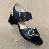 Женские туфли на высоком каблуке 2024 лето новые элегантные ретро квадратный носок слово с задней молнией открытый носок толстый каблук сандалии женские