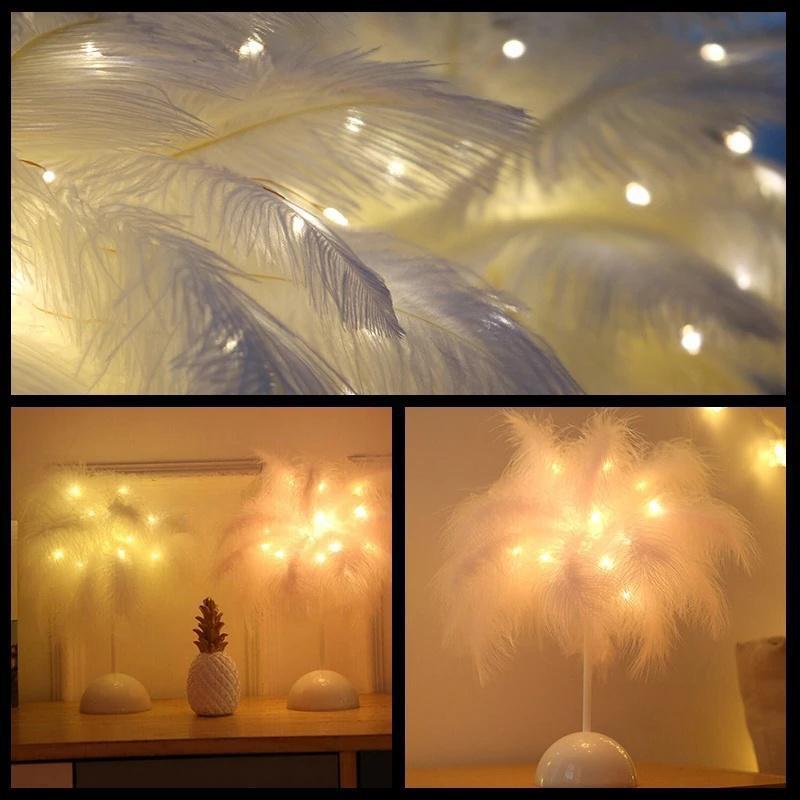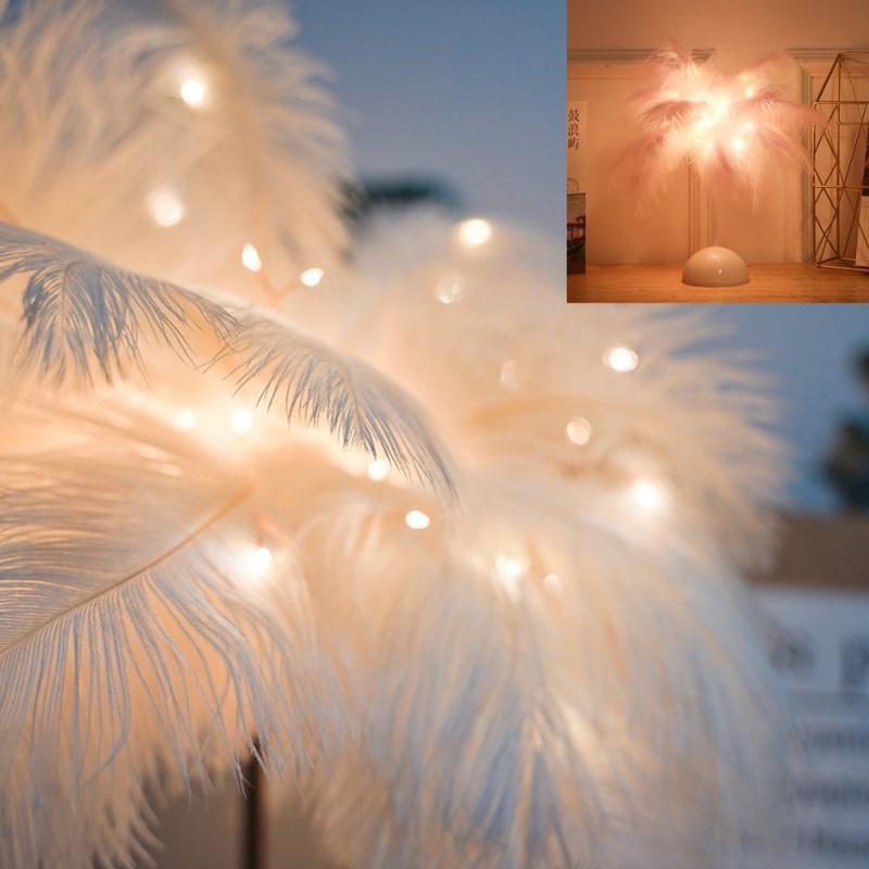 Креативная настольная лампа с перьями, теплый белый свет, абажур из перьев дерева, светодиодные декоративные огни для девочек, свадебный подарок на день рождения, домашний декор