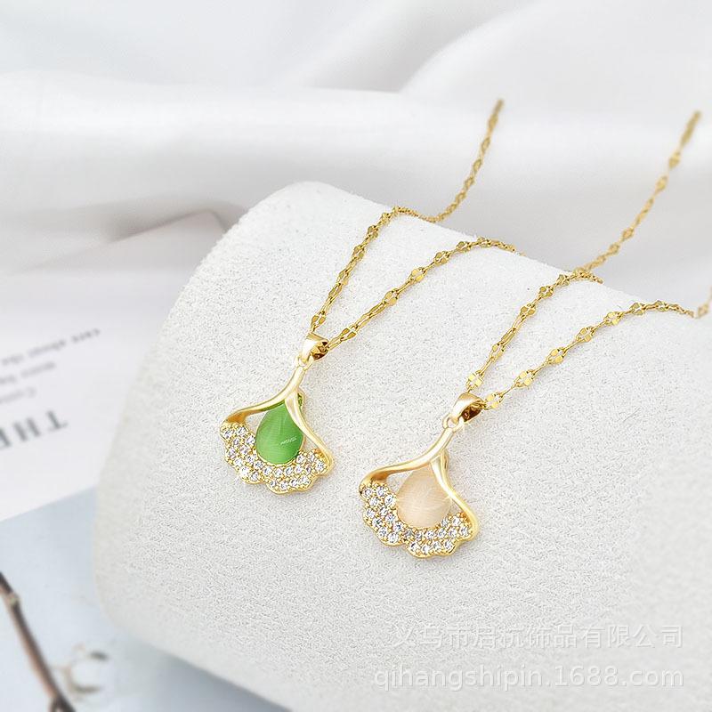 Маленькое ожерелье в виде абрикосового листа, женская подвеска из титановой стали с микроинкрустацией из циркония и опала, цепочка на ключицу, простота высшего класса