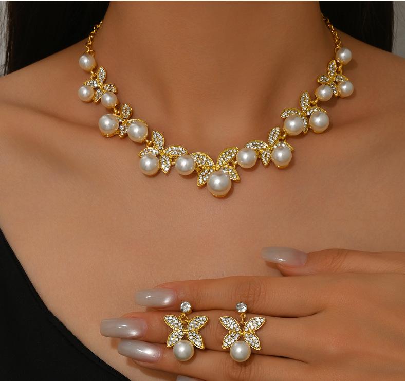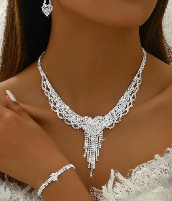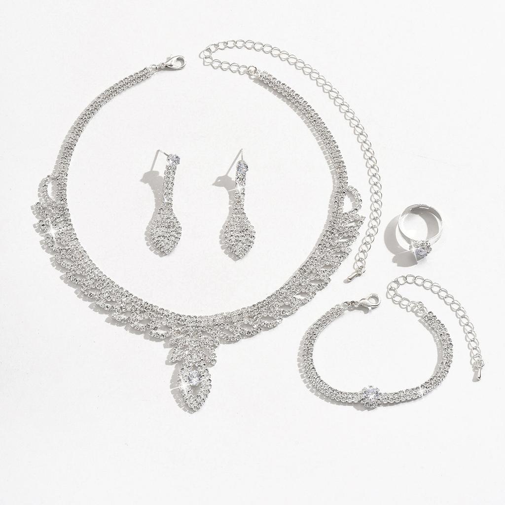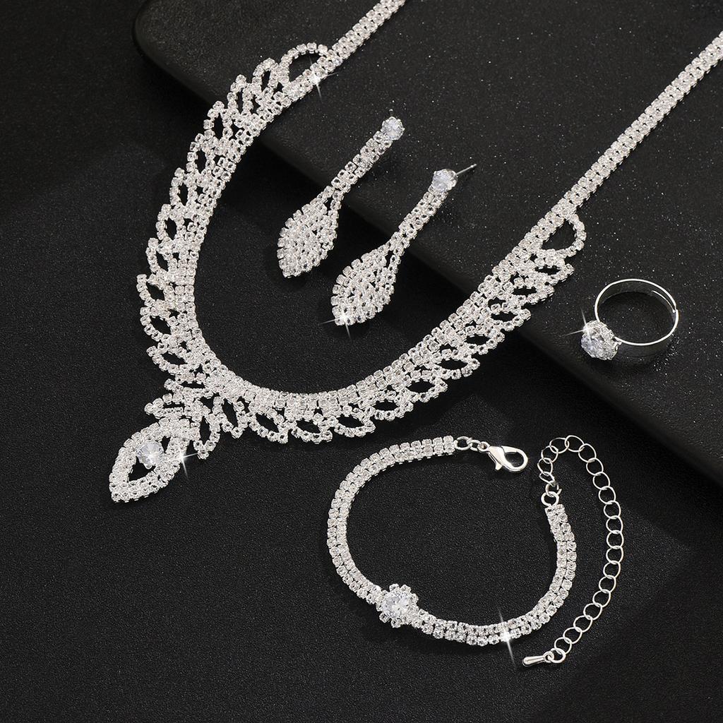 Ожерелье с полыми листьями, серьги, браслет, кольцо, комплект из четырех предметов, свадебные аксессуары со стразами