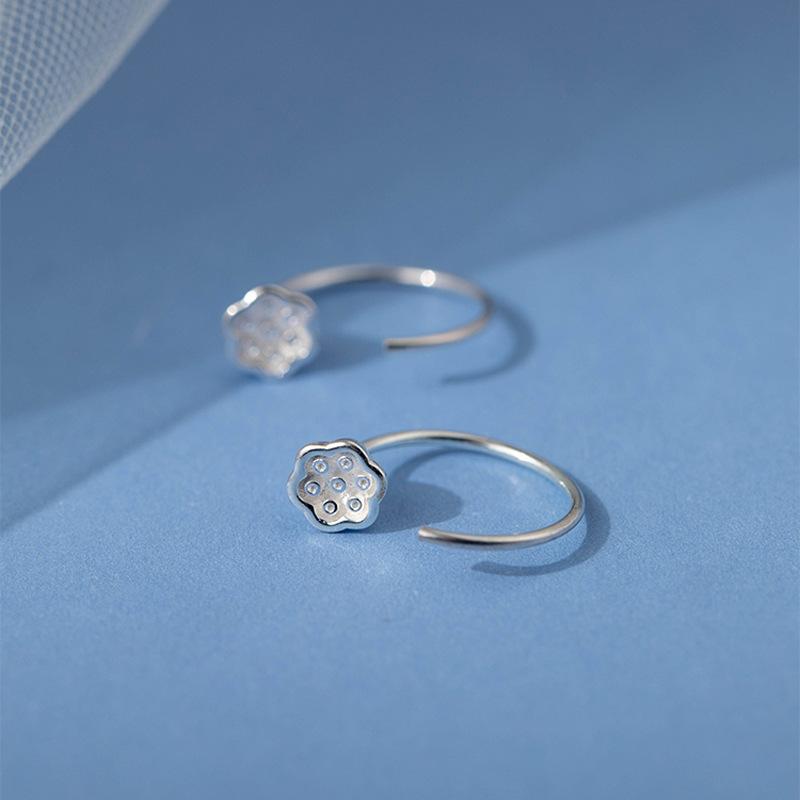 Серьги-подвески в виде лотоса Женские Простые Литературные Серьги-крючки для ушей Темперамент Ретро Китайский стиль Уникальная личность Изогнутый крючок C-образные Маленькие серьги-гвоздики