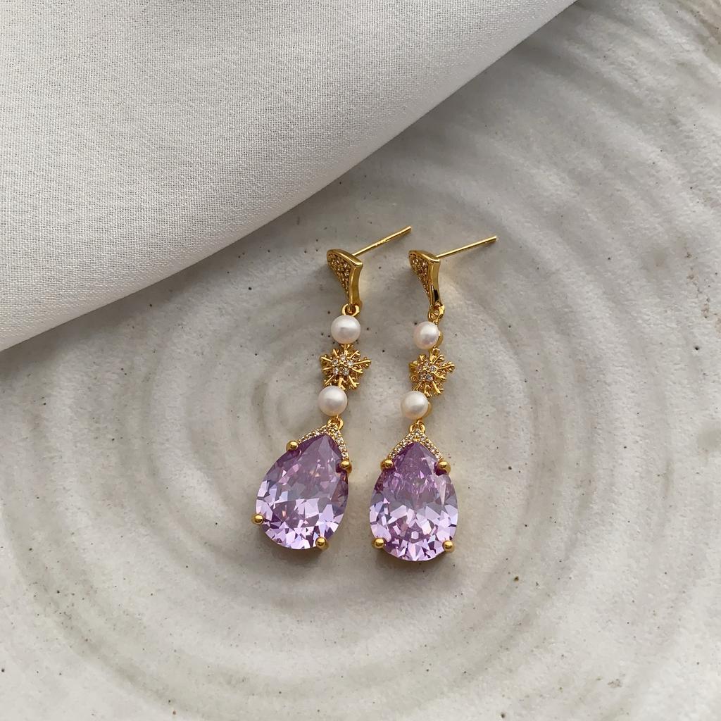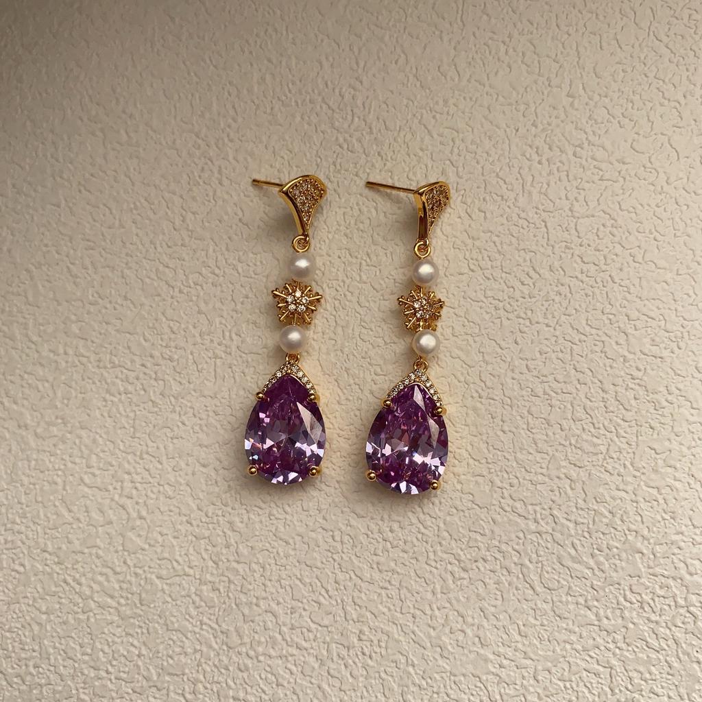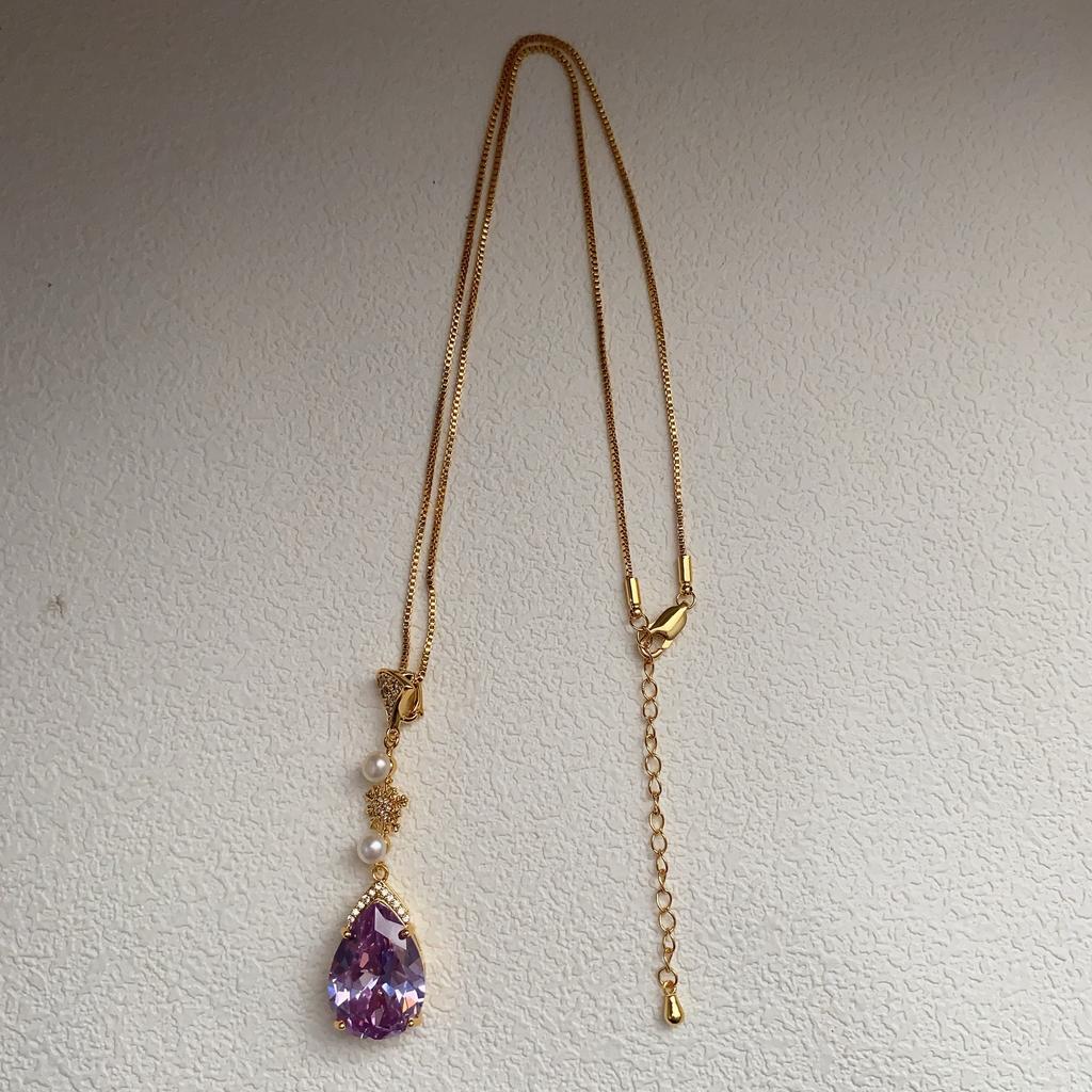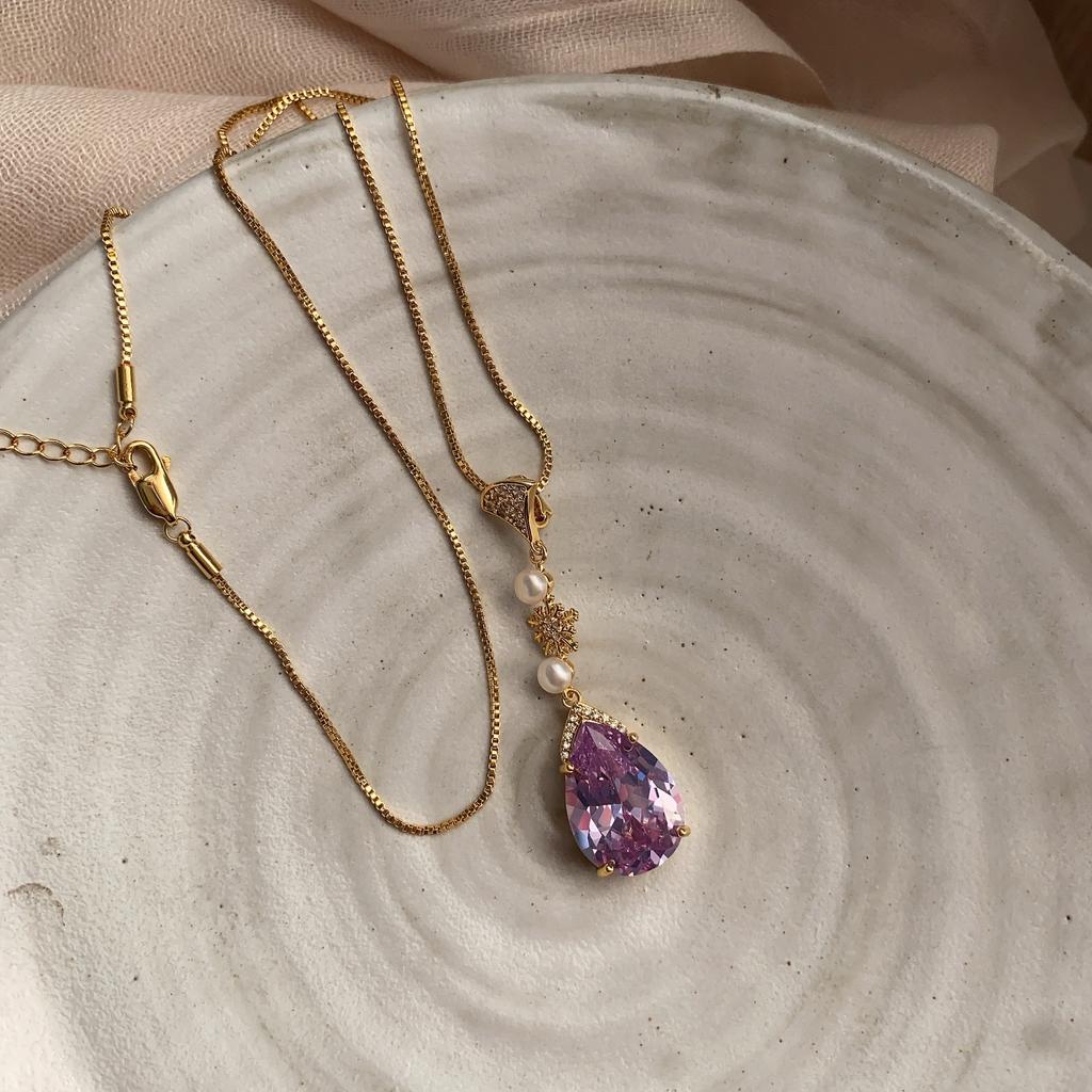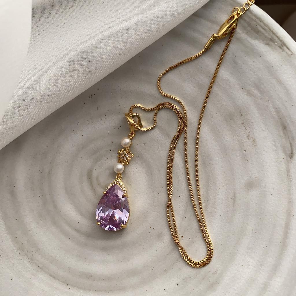 Многогранная огранка Натуральный жемчуг Цепочка на ключицу Романтическое лимитированное фиолетовое Супер вспышка Циркон Любовь Французское легкое роскошное ожерелье Женщины