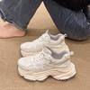 Женские кроссовки на толстой подошве, новинка осени 2024 года, дизайн с серебристой кожаной поверхностью, мягкая подошва, сетчатая поверхность, дышащие, универсальные, для отдыха и спорта