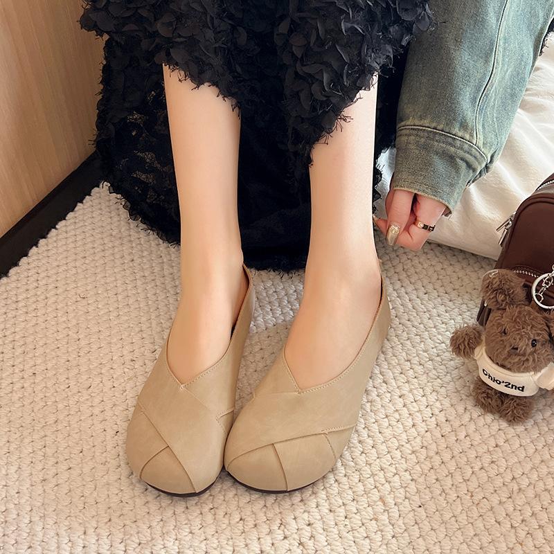 Женские туфли на плоской подошве с мягкой подошвой, корейская версия обуви Doudou, весна-осень 2025, новые туфли для бабушек с одной педалью, неглубокие ленивые туфли