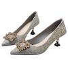 2025 новые туфли-лодочки с квадратной пряжкой из стразов, корейская версия, острый носок, рюмка и высокие каблуки, повседневные для работы, туфли-лодочки на шпильке для женщин