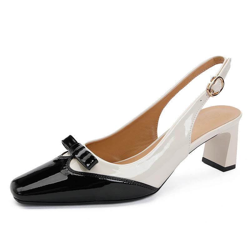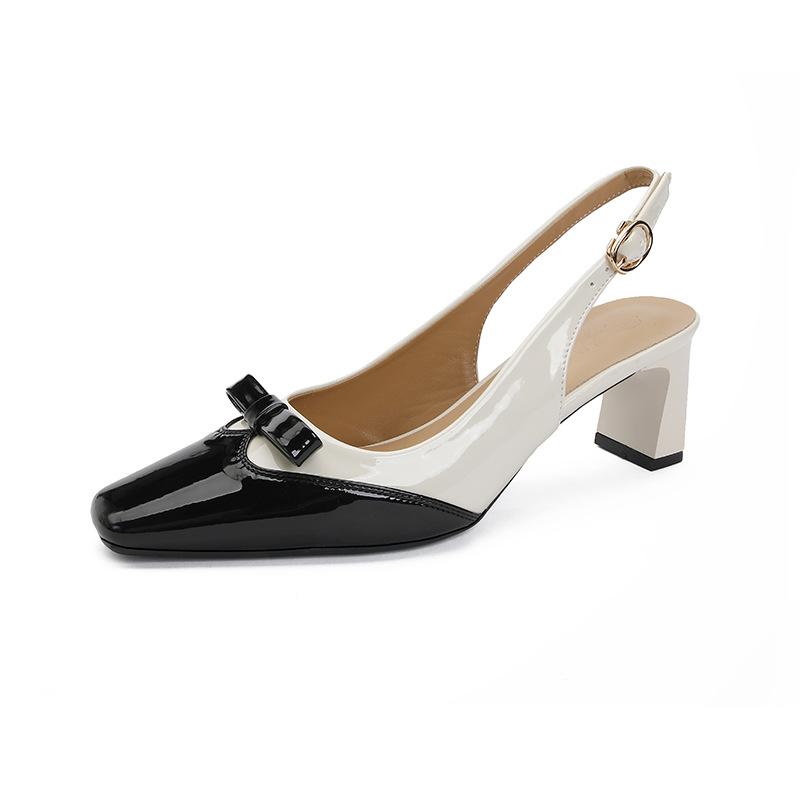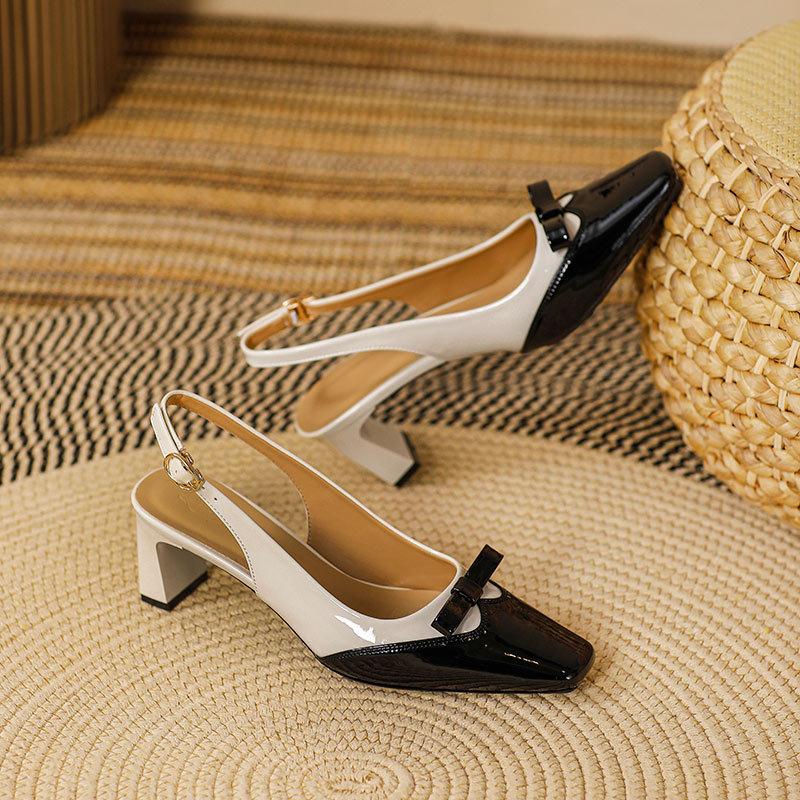 Xiaoxiangfeng single shoes women's middle heel 2025 new summer color matching square head high heels thick heel bag head empty sandals
