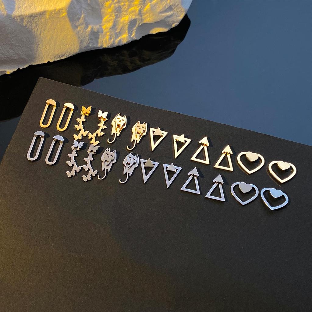 Серьги из нержавеющей стали в европейском и американском минималистском геометрическом стиле: Дизайны с кошками, бабочками и любовью
