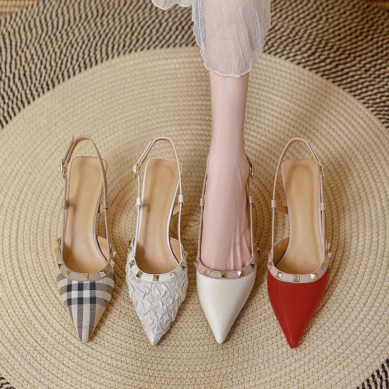 Босоножки Baotou женские летние с острым носком на высоком каблуке-шпильке 2025 новые с заклепками французский темперамент маленький каблук открытые туфли