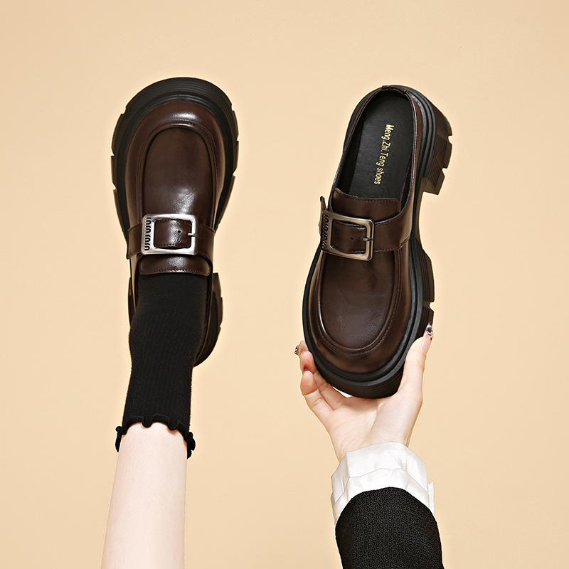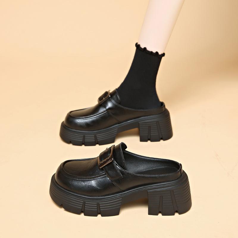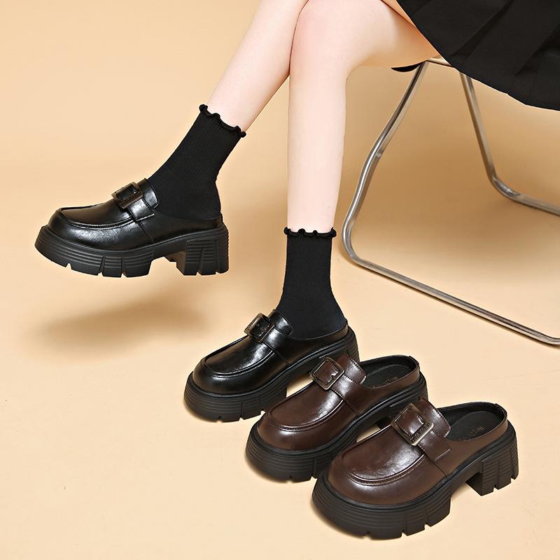 Туфли-полушапки Mary Jane на толстом каблуке с застежкой-молнией на голову женские весна 2025 года новые британские туфли в британском стиле женские тапочки-лоафелианг