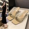 Cross-strap square slippers for women to wear in the summer of 2024, the new Internet celebrity popular temperament versatile open-toed cool slippers