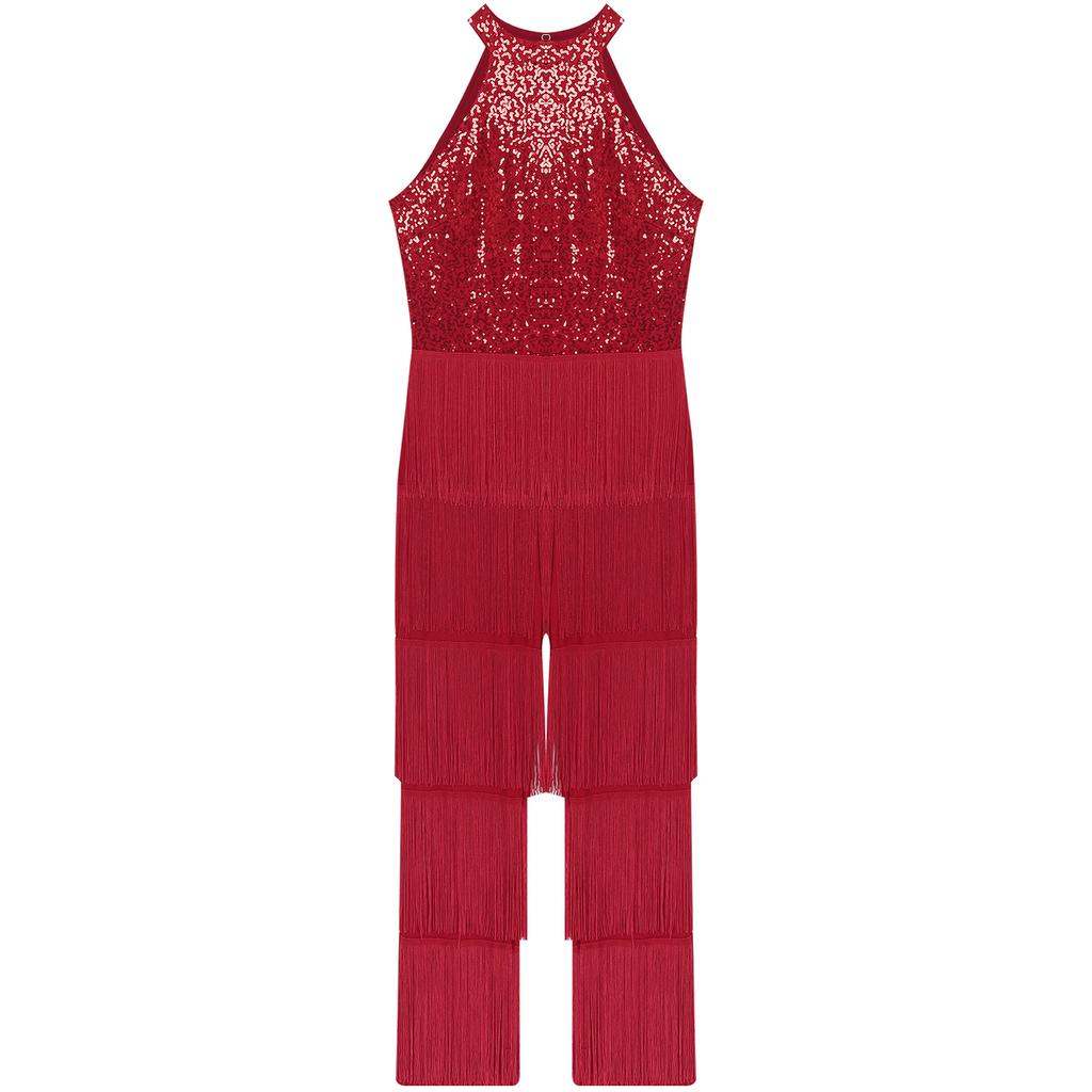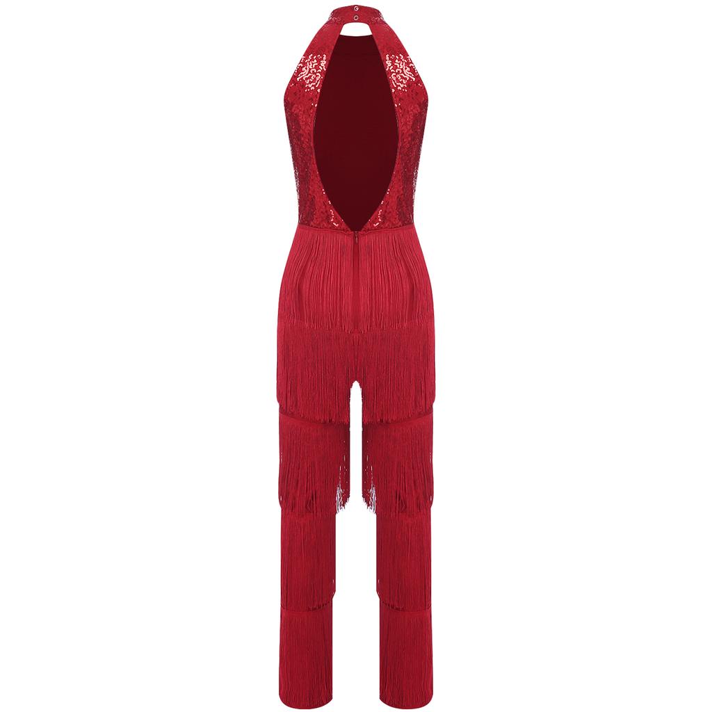 Женский костюм для латиноамериканских танцев, новые брюки с бахромой, полный комбинезон, бальный костюм с кисточками, танго, ча-ча, самба, одежда