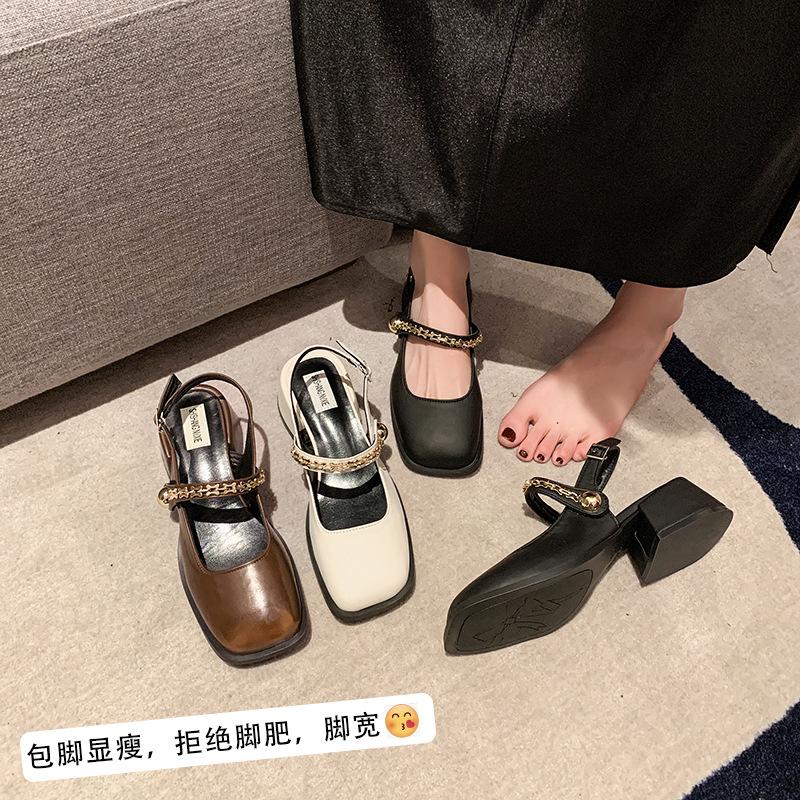 Французские черные босоножки-мешки на высоком каблуке, женская обувь 2025 года, новые весенне-летние туфли Мэри Джейн на толстом каблуке, вечерние туфли — купить товар онлайн с бесплатной доставкой до всему миру!
