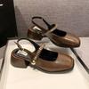Французские черные босоножки-мешки на высоком каблуке, женская обувь 2025 года, новые весенне-летние туфли Мэри Джейн на толстом каблуке, вечерние туфли