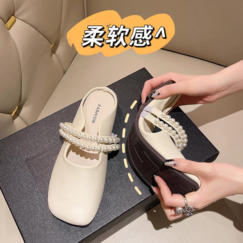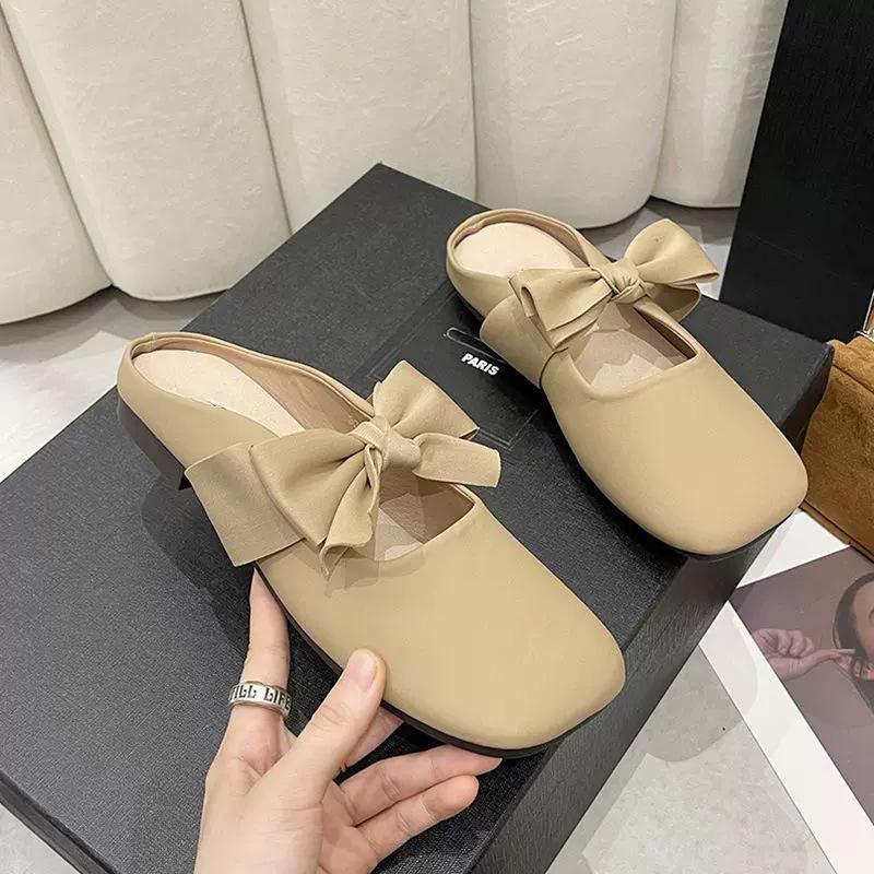 Баотоу полутапочки женские весна-лето уличная одежда 2025 новинка интернет-знаменитость жемчужный бант мягкая подошва сказочный стиль сандалии