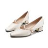 Korean version of pearl one-word belt Xiuhe wedding shoes fairy style square head thick heel single shoes female French banquet temperament high heels