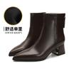 2024 короткие сапоги на высоком каблуке для женщин осень-зима новые женские сапоги на толстом каблуке с застежкой-молнией сзади корейская версия короткие коричневые сапоги с острым носком для чи