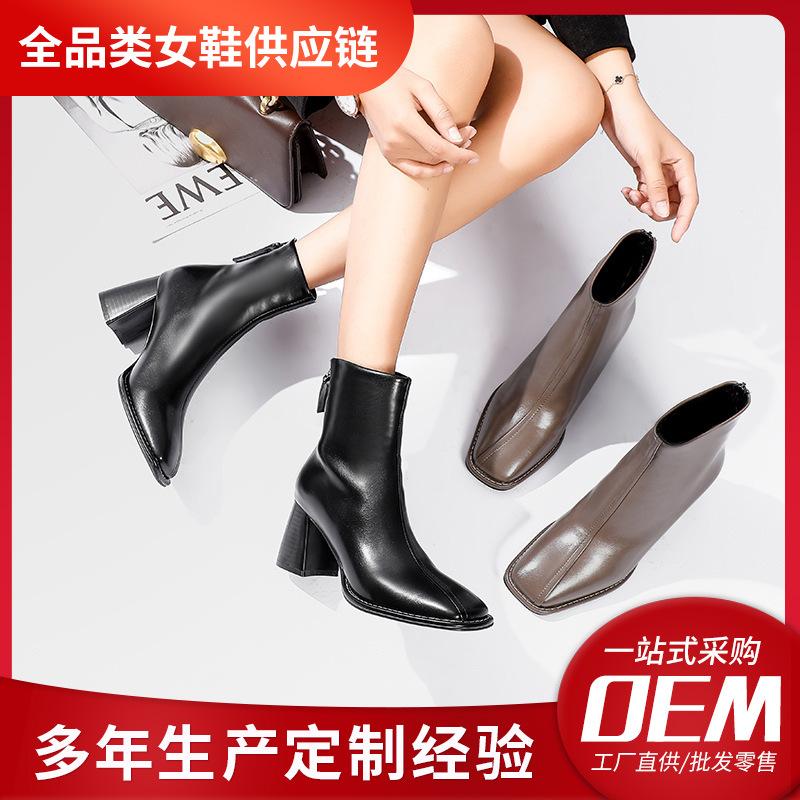 Осень и зима новые короткие ботильоны на высоком каблуке женские на заказ корейская версия ботинки на толстом каблуке детские на заказ квадратный носок задняя молния мартин женские