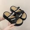 Женские тапочки с жемчужным узором на толстой подошве, которые можно носить летом 2025 года, новые классные женские тапочки с плоским дном и перекрестными ремешками с одним иероглифом