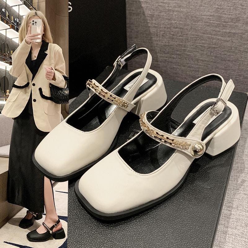 Французские черные босоножки-мешки на высоком каблуке, женская обувь 2025 года, новые весенне-летние туфли Мэри Джейн на толстом каблуке, вечерние туфли — купить товар онлайн с бесплатной доставкой до всему миру!