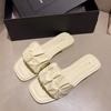 French flat-bottomed cool slippers women's summer wear fashion 2025 new skirt niche high-end beach slippers — купить товар онлайн с бесплатной доставкой до всему миру!