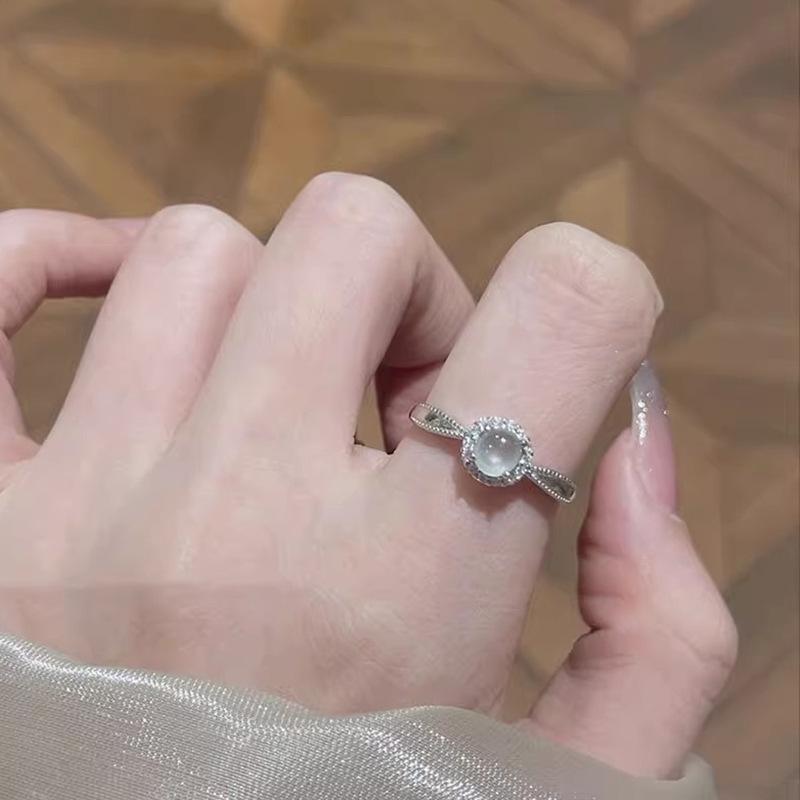 Женское ретро-кольцо из белого халцедона с цирконом – новый китайский стиль, легкий роскошный дизайн