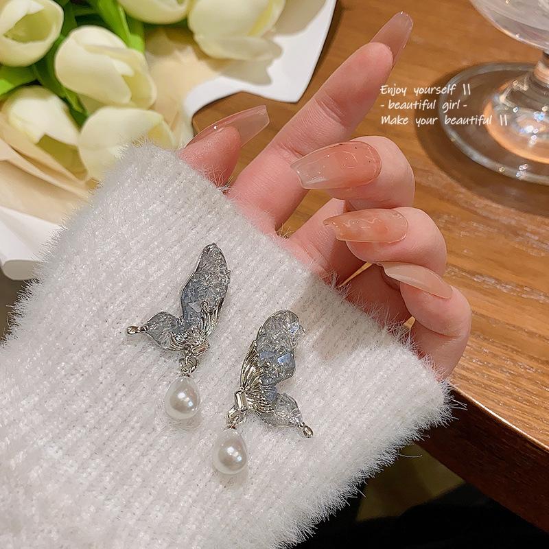 Женские серьги-иглы из серебра 925 пробы с роскошным жемчугом и камнями кошачий глаз — элегантный, универсальный дизайн.