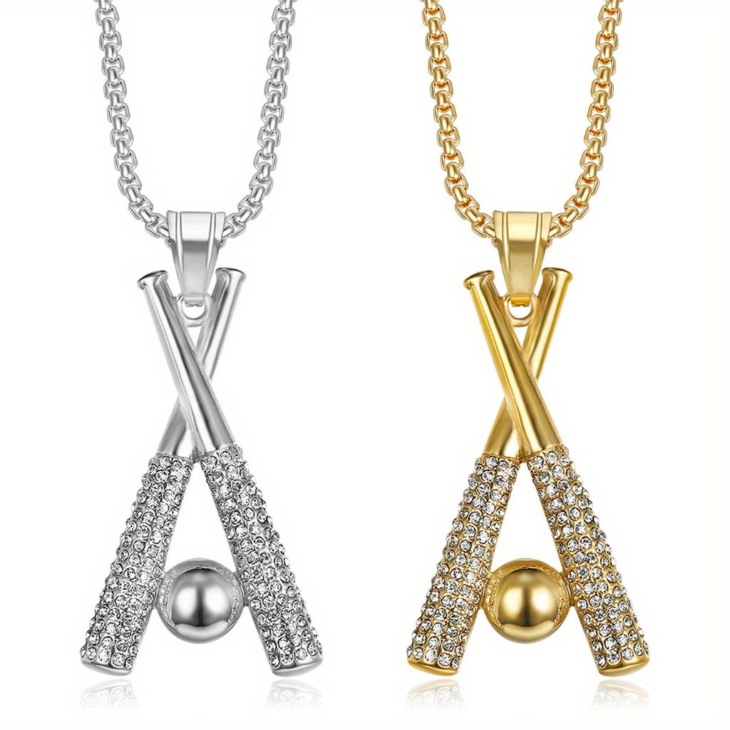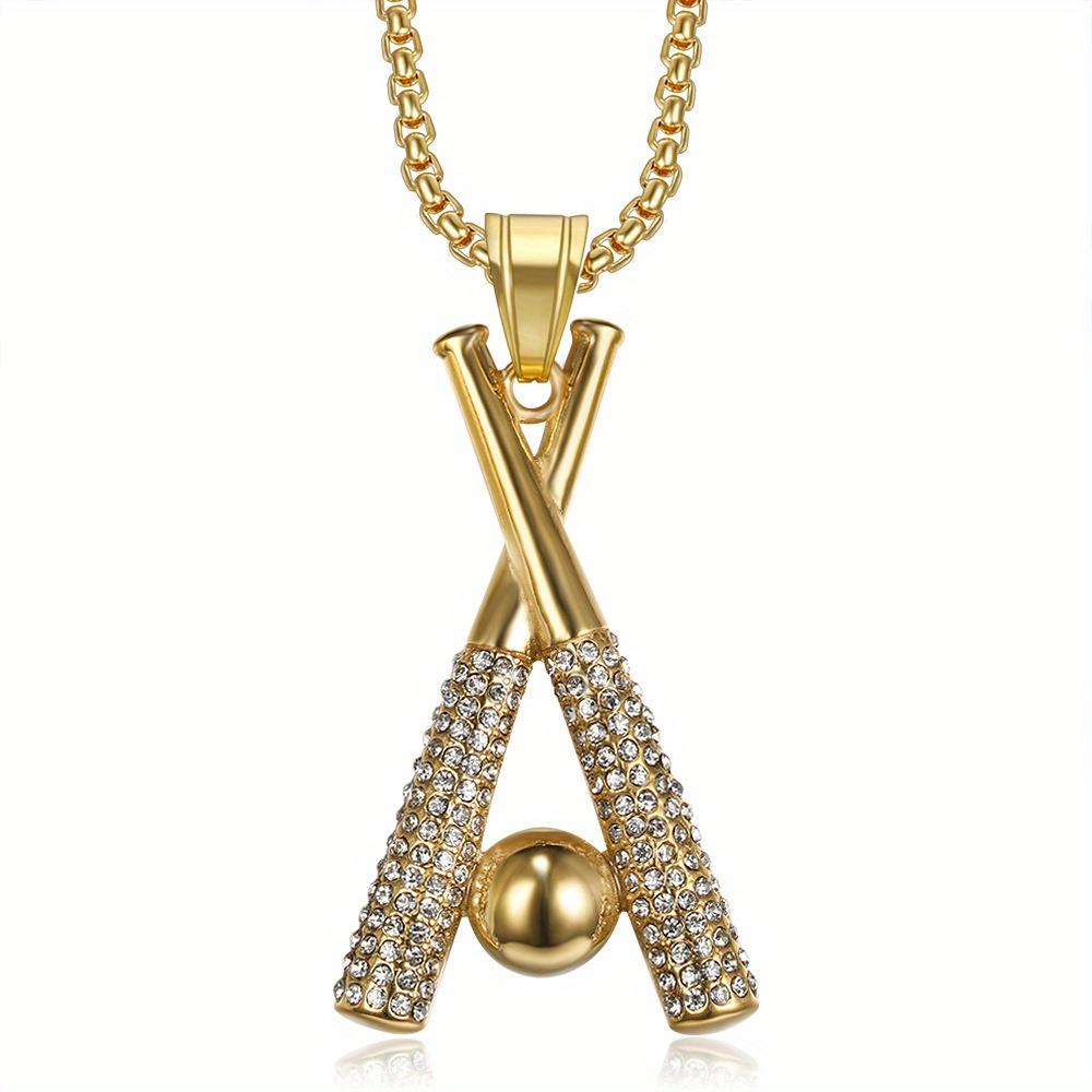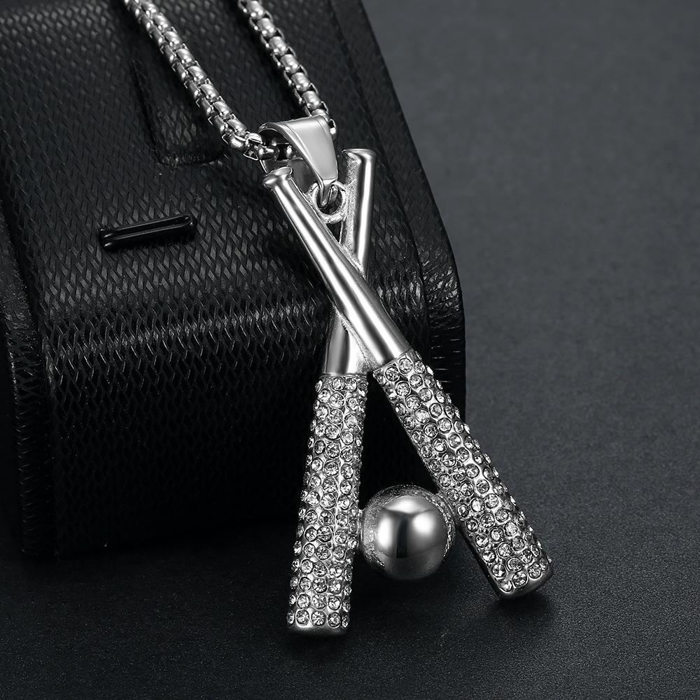 Ожерелье из нержавеющей стали с подвеской в виде бейсбольной биты из цельного циркония, мужское ювелирное украшение в стиле хип-хоп