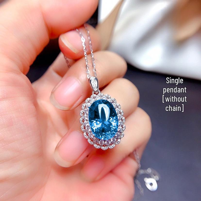 Комплект из кольца и ожерелья с топазом цвета морской волны и бриллиантами - роскошные ювелирные изделия в стиле знаменитостей для женщин