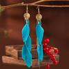 Серьги-кисточки в стиле «Богема» в виде перьев — стиль Юньнань, эффектный аксессуар для фотосъемки в путешествии.