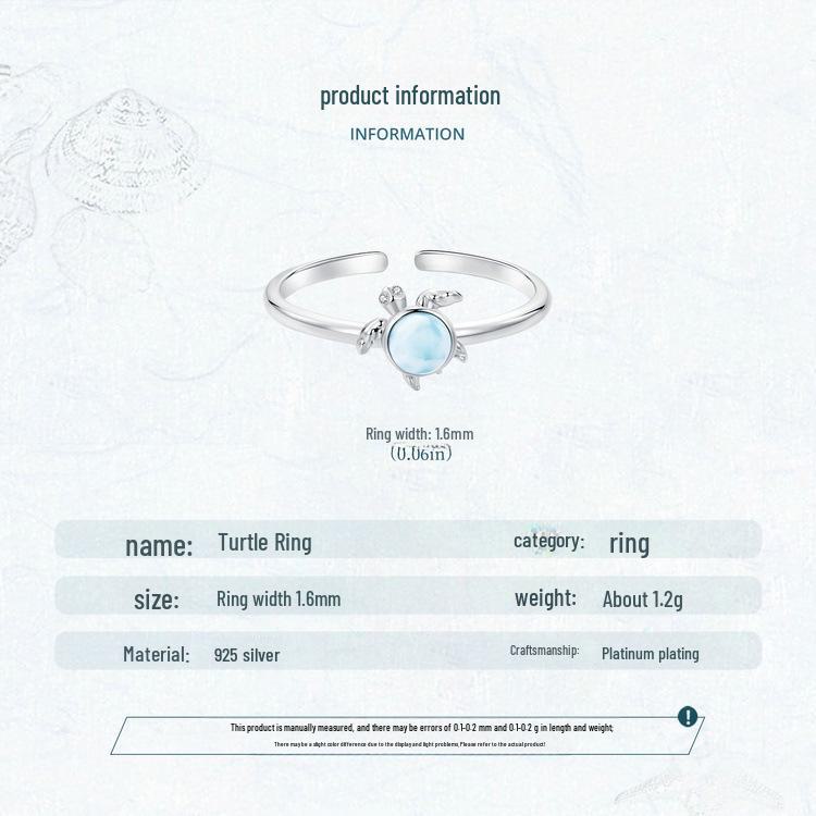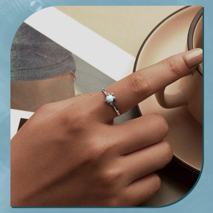 Кольцо регулируемого размера 'Синяя черепаха' из стерлингового серебра 925 пробы для женщин