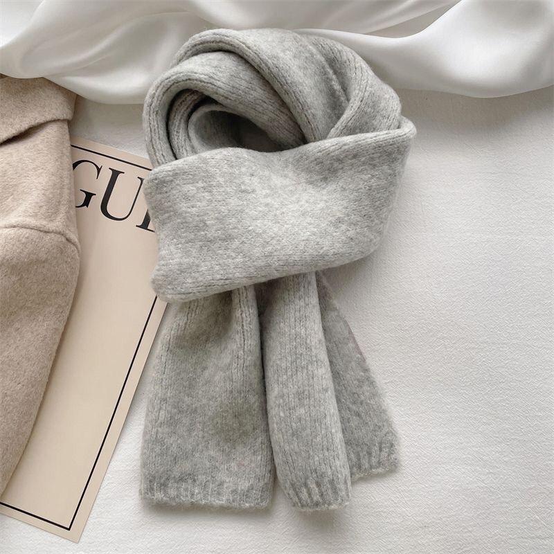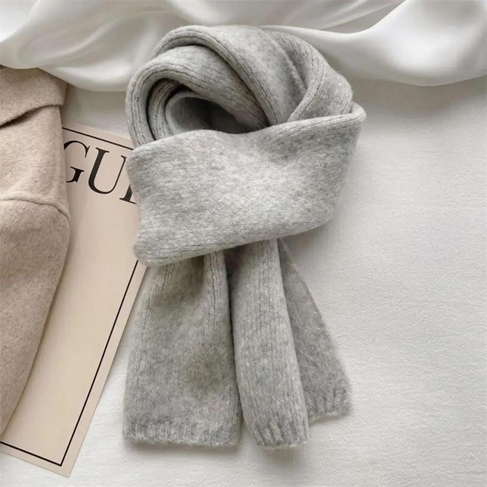 Вязаный шарф, однотонный, утолщенный, теплый, женский шарф, термоповязка на шею для холодной погоды, повседневный шарф