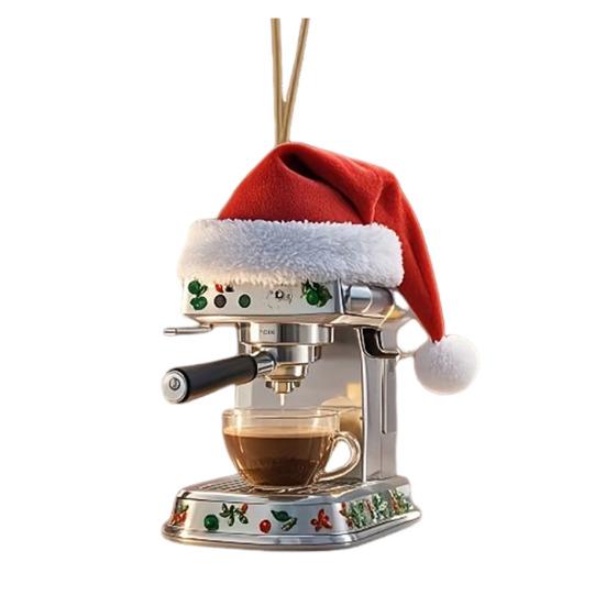 Уникальный дизайн кофемашины: Это рождественское украшение, изготовленное из прочного акрила, напоминает настоящую кофемашину, украшенную праздничной шапочкой и небольшими украшениями для придания очаровательного вида.