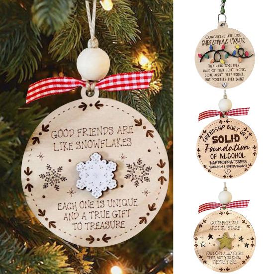 Отпразднуйте особые узы дружбы с помощью наших подвесных украшений. Эти украшения, изготовленные из дерева с четкими надписями, содержат искренние послания благодарности друзьям и коллегам.. Каждое украшение разработано с вниманием к деталям, что добавит очарования и изысканности вашему праздничному декору..