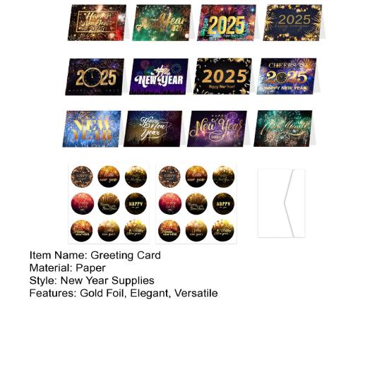 Отпразднуйте Новый год стильно с нашим набором поздравительных открыток! Каждый набор включает в себя 12 карточек с разными стильными дизайнами, а также 18 наклеек для конвертов и 12 конвертов.. Эти открытки изготовлены из высококачественных материалов, долговечны, приятны на ощупь и имеют четкие узоры, которые не выцветают.