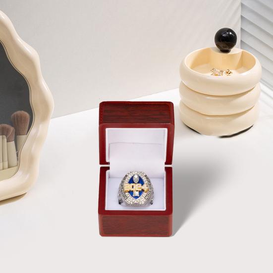 Отпразднуйте свои победы стильно с нашим чемпионским кольцом. Это универсальное украшение можно носить на пальце или в качестве ожерелья с помощью прилагаемой цепочки.. Поставьте его на подставку и гордо выставьте в качестве уникального украшения рабочего стола, которое добавит очарования любому пространству.. Изготовлено из высококачественного кубического циркония, обработано вручную и покрыто двойным слоем платины для длительного блеска..