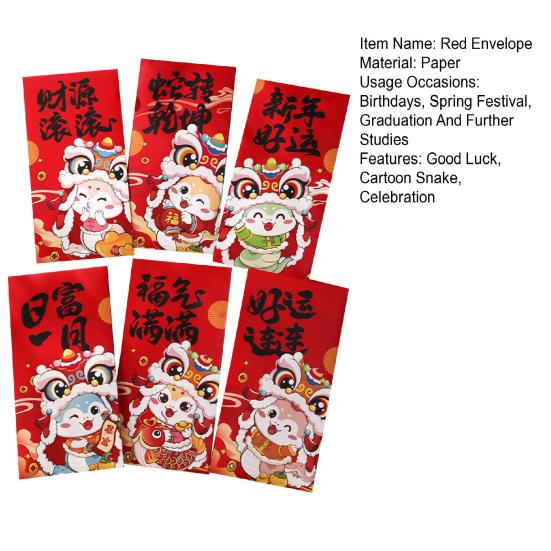Встречайте год Змеи с нашими тщательно изготовленными новогодними красными конвертами 2025 года, которые идеально подойдут для передачи благословений и подарков вашим близким.. В каждую упаковку входят 6 прочных бумажных красных карманов, устойчивых к разрывам и износу, что гарантирует безупречный стиль вашего подарка.