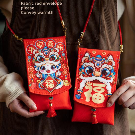 Этот высококачественный красный конверт изготовлен из прочного тканевого материала, что гарантирует его долговечность.. Удобная конструкция с подвесным тросом обеспечивает легкую переноску. Красный цвет символизирует удачу в китайской культуре, а традиционные узоры и элементы передают благословения и добрые пожелания.. Эти конверты идеально подходят для празднования китайского Нового года. Они украшены праздничными китайскими узорами, олицетворяющими счастье и процветание, отражающими суть китайских традиций..