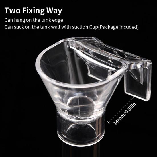 Кормушка для аквариума принимает конструкцию крючка, чтобы предотвратить его падение, и может быть подвешен на краю стенки цилиндра толщиной 14 мм. Принят материал с высокой проницаемостью, с высокой прозрачностью и лучшим обзором.