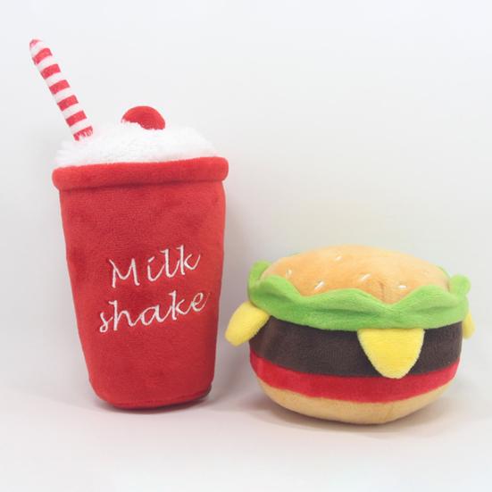 Плюшевая игрушка для питомца Мягкая Встроенный голос Молочный коктейль Гамбургер Игрушка для жевания для собаки Питомец