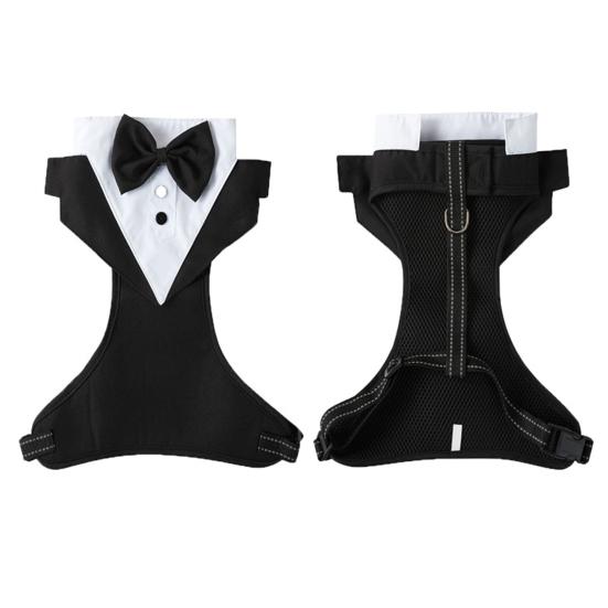 Если вы хотите запечатлеть приятное времяпрепровождение вас и вашего щенка на днях рождения, свадьбах и других особых случаях, этот костюм для собаки с черным галстуком-бабочкой может послужить хорошим реквизитом для фотографии.