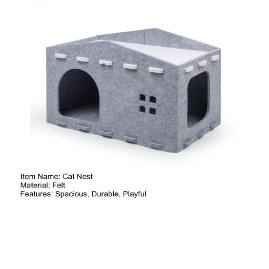 Это кошачье гнездо, изготовленное из прочного фетра, устойчиво, дышащее и идеально подходит для круглогодичного использования.. Съемная конструкция отверстий позволяет легко собирать и хранить, не беспокоясь о повреждении молний.. Это кошачье гнездо не только функционально, но и служит привлекательным предметом интерьера, придавая нотку причудливости вашему домашнему декору.. Подарите своей кошке стильное убежище с этим очаровательным кошачьим гнездом.