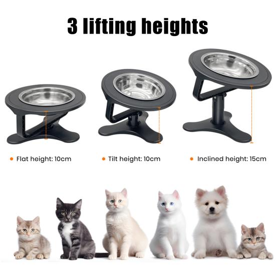 Регулируемая высота и угол: Наклоните миску на 15 градусов или положите ее горизонтально, чтобы обеспечить удобное положение для кормления, гарантируя питомцам комфорт и снижая нагрузку на их шеи и желудки.