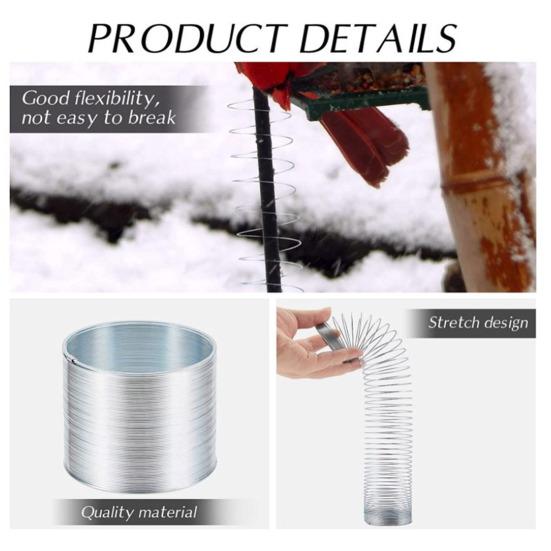 Эластичный пружинный механизм: Противобеличья пружина обладает превосходной эластичностью, позволяя ей растягиваться до оптимальной длины, что эффективно удерживает белок и енотов от доступа к кормушкам для птиц, создавая безопасную и спокойную среду для кормления птиц.