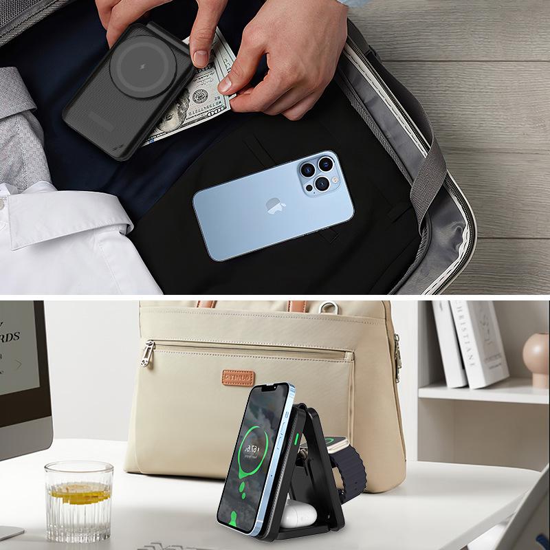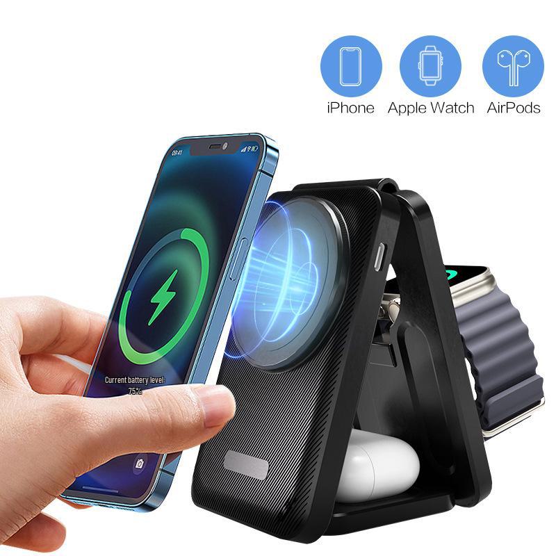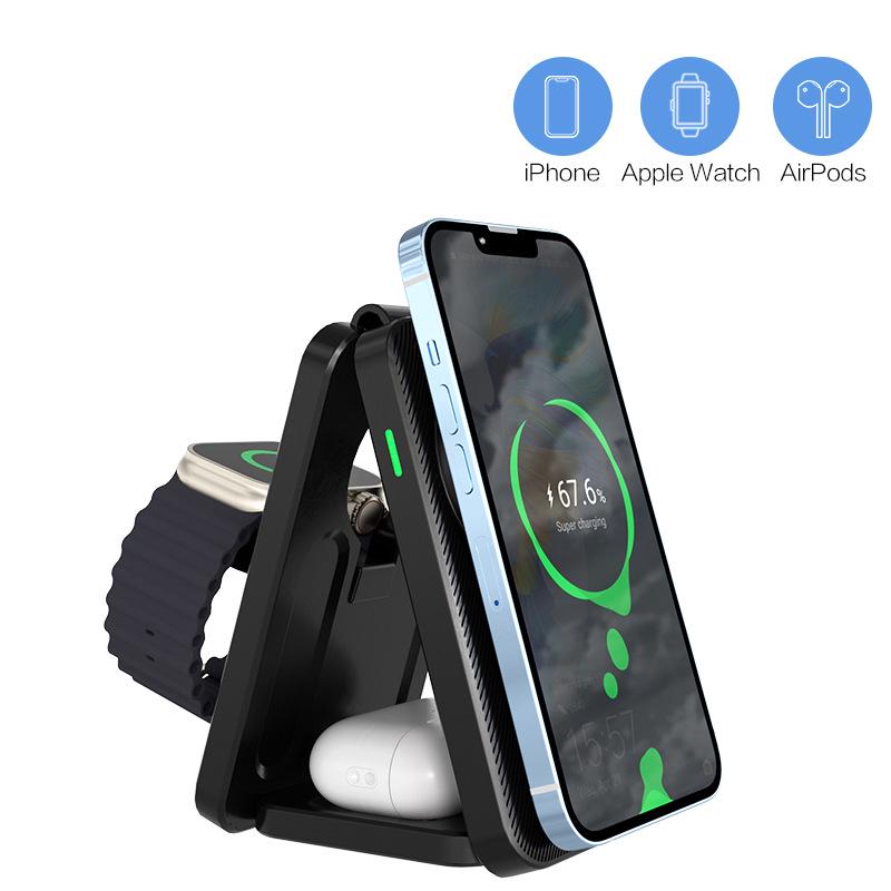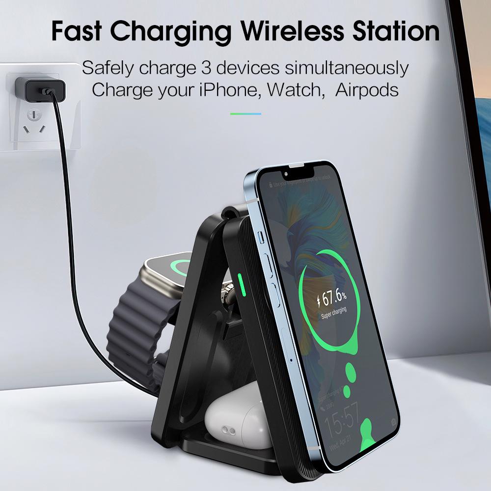 Складное магнитное беспроводное зарядное устройство 3 в 1 для Apple Watch и 15 Pro Max