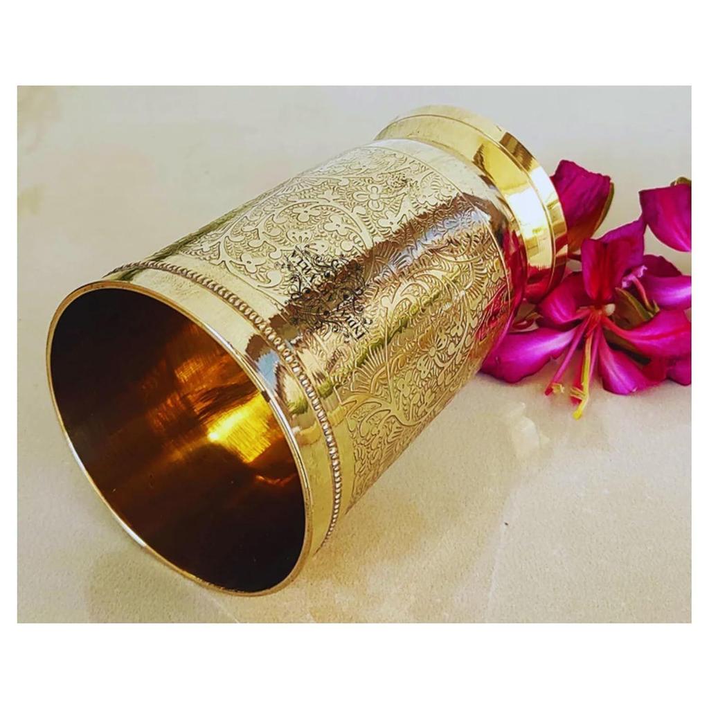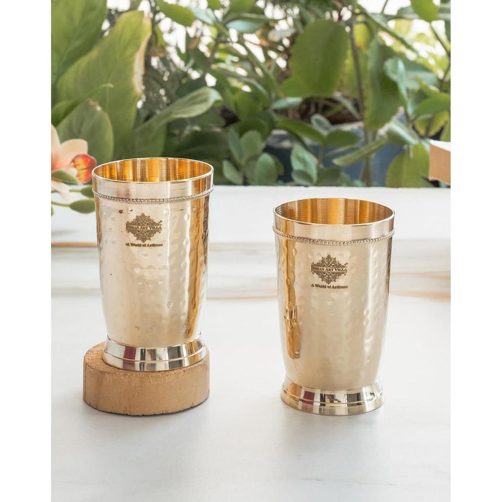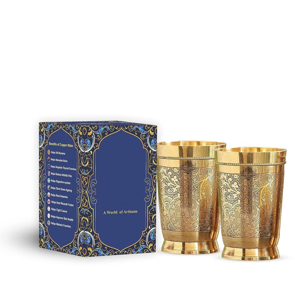 Чистая латунь стакан для питья подачи воды, йоги и аюрведы, набор из 2 штук