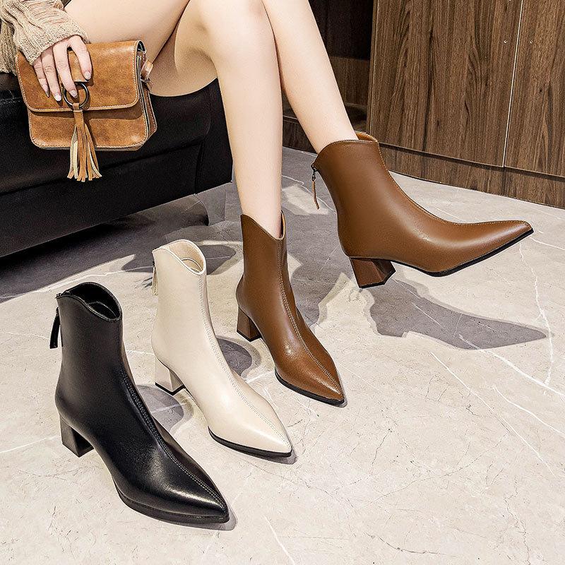 Тонкие сапоги на высоком каблуке 2024 года, новые осенне-зимние белые одинарные сапоги на толстом каблуке с застежкой-молнией сзади, средние остроносые французские короткие сапоги — купить товар онлайн с бесплатной доставкой по всему миру!