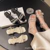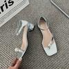 Босоножки на одном слове с сумкой на голове женские французские потрясающие серебристые в сказочном стиле на толстом каблуке с юбкой босоножки женские на среднем каблуке